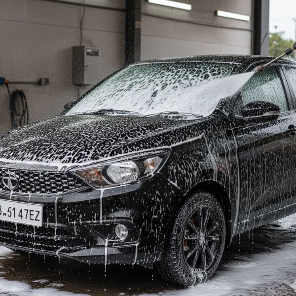 Our sedan wash includes exterior foam wash, tyre and wheel cleaning, underbody rinse (if accessible), interior vacuuming, dashboard polishing, and window cleaning.